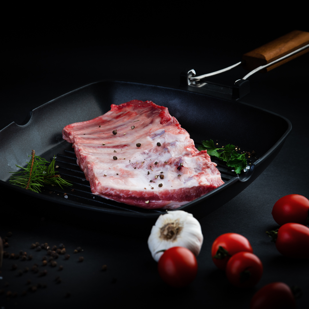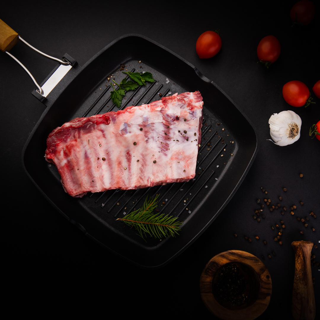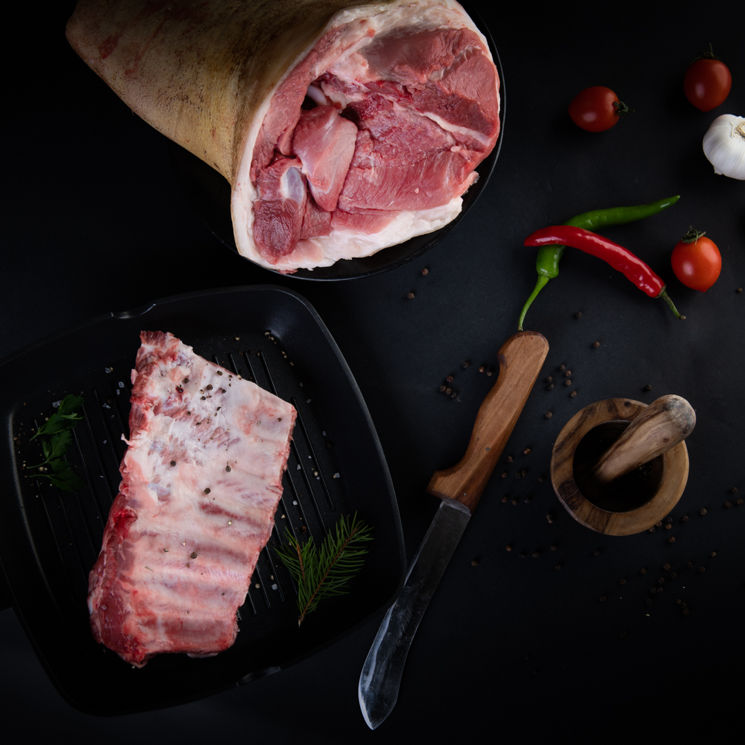 Frissen vákuumozott, kiváló minőségű, csontos sertés oldalas. 1kg-os kiszerelésben szállítjuk házhoz. Nagyszerű fogást varázsolhat belőle akár pácolja, grillezi vagy a töltött káposztát gazdagítja vele. Még ajánljuk sültként vagy konfit formájában elkészíteni és levesekbe felhasználni.